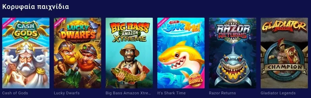 Σας προσφέρουμε πρόσβαση σε περισσότερα από 6.700 παιχνίδια από τους πιο φημισμένους παγκόσμιους προγραμματιστές. Η βιβλιοθήκη παιχνιδιών μας περιλαμβάνει τα πιο πρόσφατα video slots αγαπητά στην ελληνική κοινότητα παιχνιδιών, κλασικά επιτραπέζια παιχνίδια, συναρπαστικό live casino με επαγγελματίες κρουπιέρηδες και ολοκληρωμένη προσφορά αθλητικών στοιχημάτων συμπεριλαμβανομένων των ελληνικών αθλητικών πρωταθλημάτων.